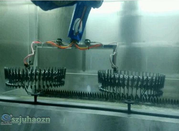 随着机器人静电喷漆代替了往复式自动静电涂装设备的自动静电涂装技术的进步,开发成功与喷涂机器人配套应用的弹匣杯式涂装法,这种系统把配套机器人和传统的输起系统彻底分离,(一汽丰田二厂车身涂装线采用的就是静电机器人涂装法喷涂水性底色漆)。