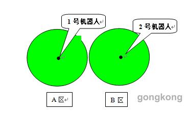 首先,对于机器人本体之间的相互碰撞以及机器人与喷漆室室体的碰撞来说,主要通过以下两种方式来避免。第一,设置防撞检测。在机器进行仿型示教时,以每台机器人为中心设置一个防撞区。如下图所示: 当机器人在进行正常作业时,以1号机器人为中心的A区是不允许2号机器人动作的,这样就可以避免机器人本体之间的相互碰撞。第二,机器人各个轴的转动是通过伺服电机来完成的。当机器人发生碰撞之后各轴的脉冲反馈值出现异常,机器人立即产生干涉报警,防止更为严重的碰撞事件发生。